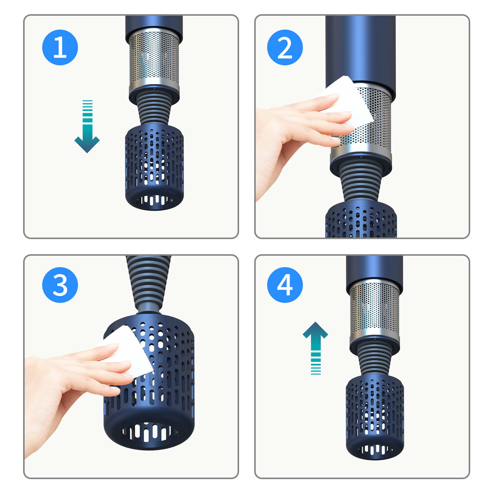 Le corps est doté d'un filtre intégré qui empêche efficacement la poussière, le peluchage et les cheveux d'être aspirés par le puissant moteur, prolongeant ainsi la durée de vie du moteur. De plus, la conception innovante du garde-magnétique permet de retirer et de nettoyer facilement le filtre, ce qui rend l'entretien quotidien sans outils extrêmement rapide et simple.