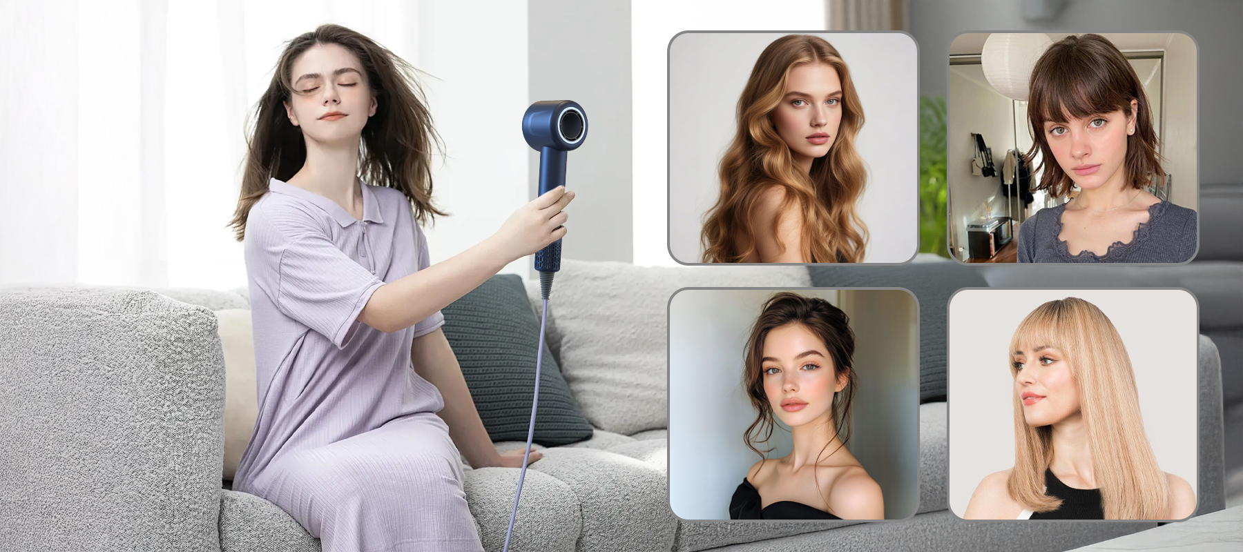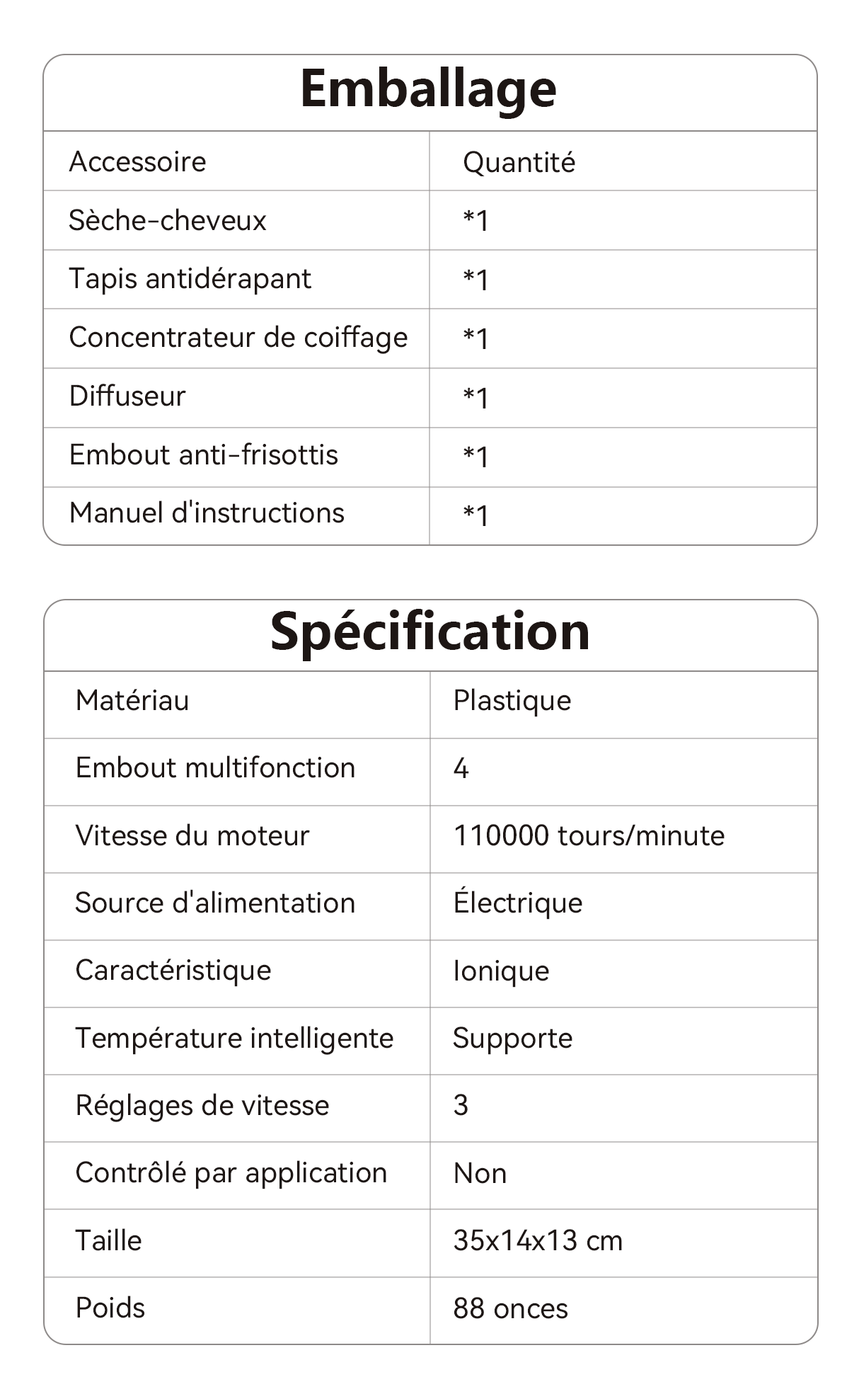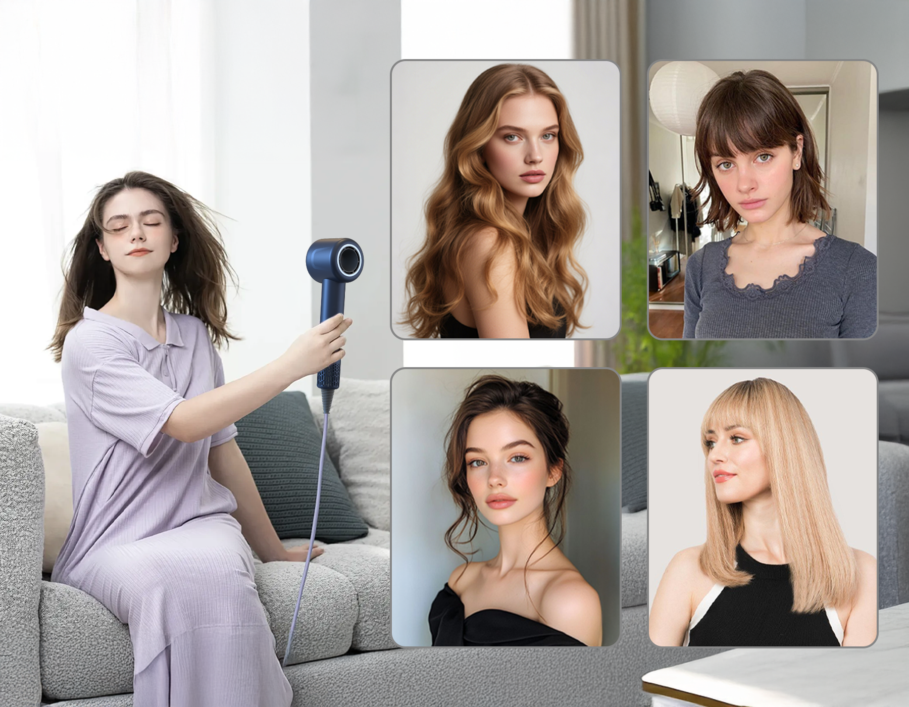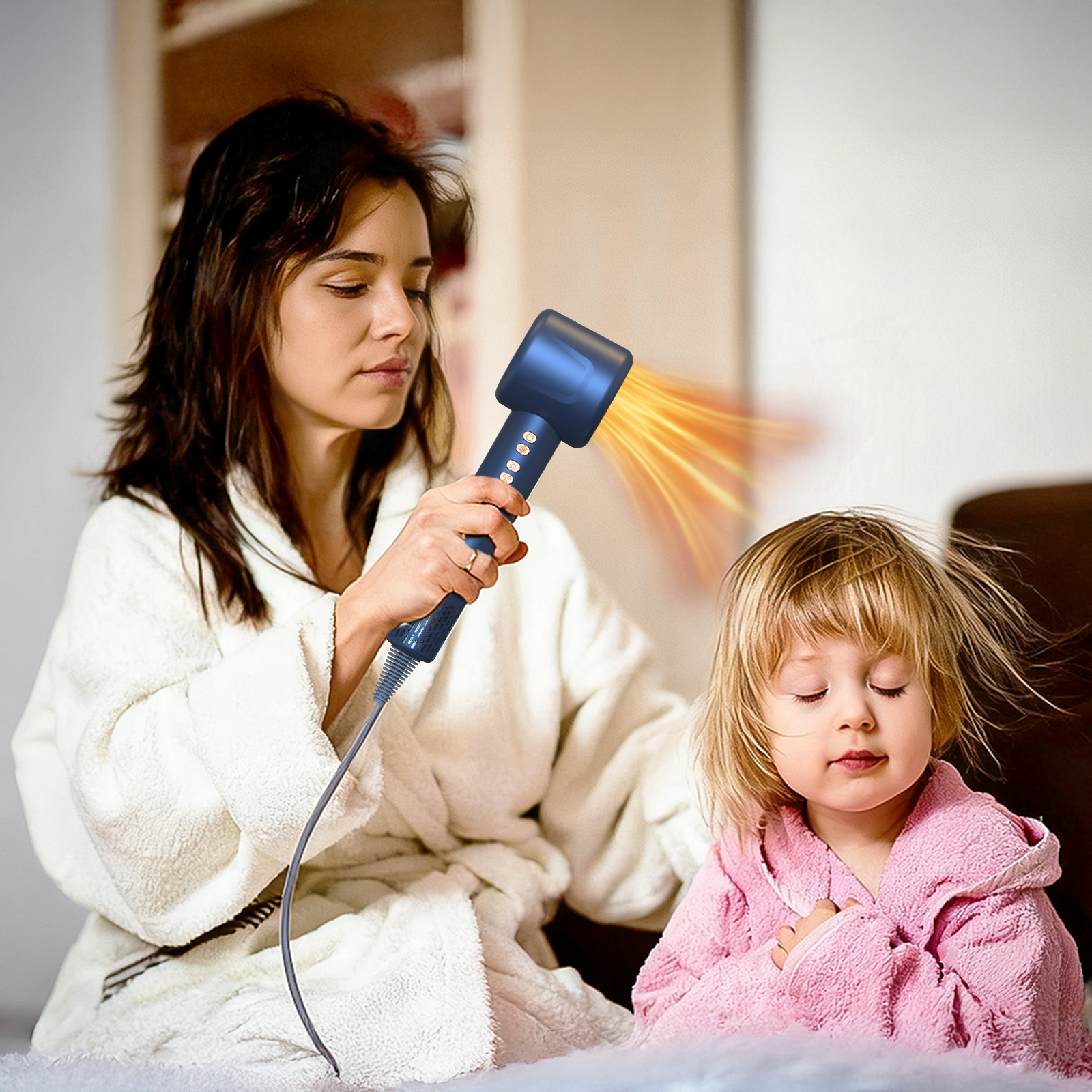 - Séchage Rapide en 4 Minutes – Le moteur haute vitesse offre un flux d'air puissant pour un séchage rapide sans dommage dû à la chaleur.