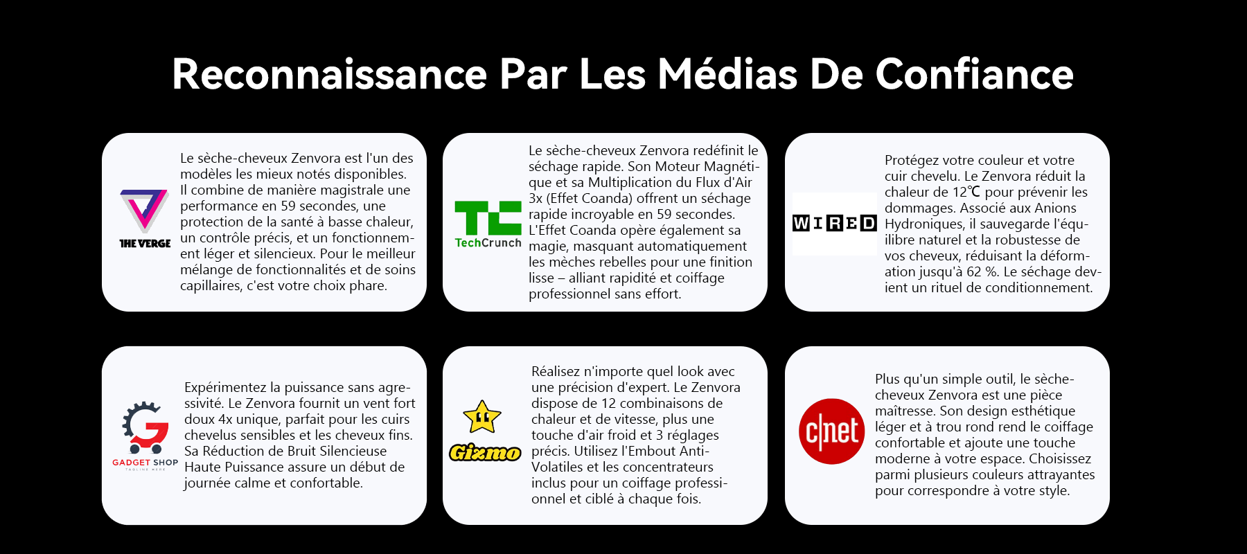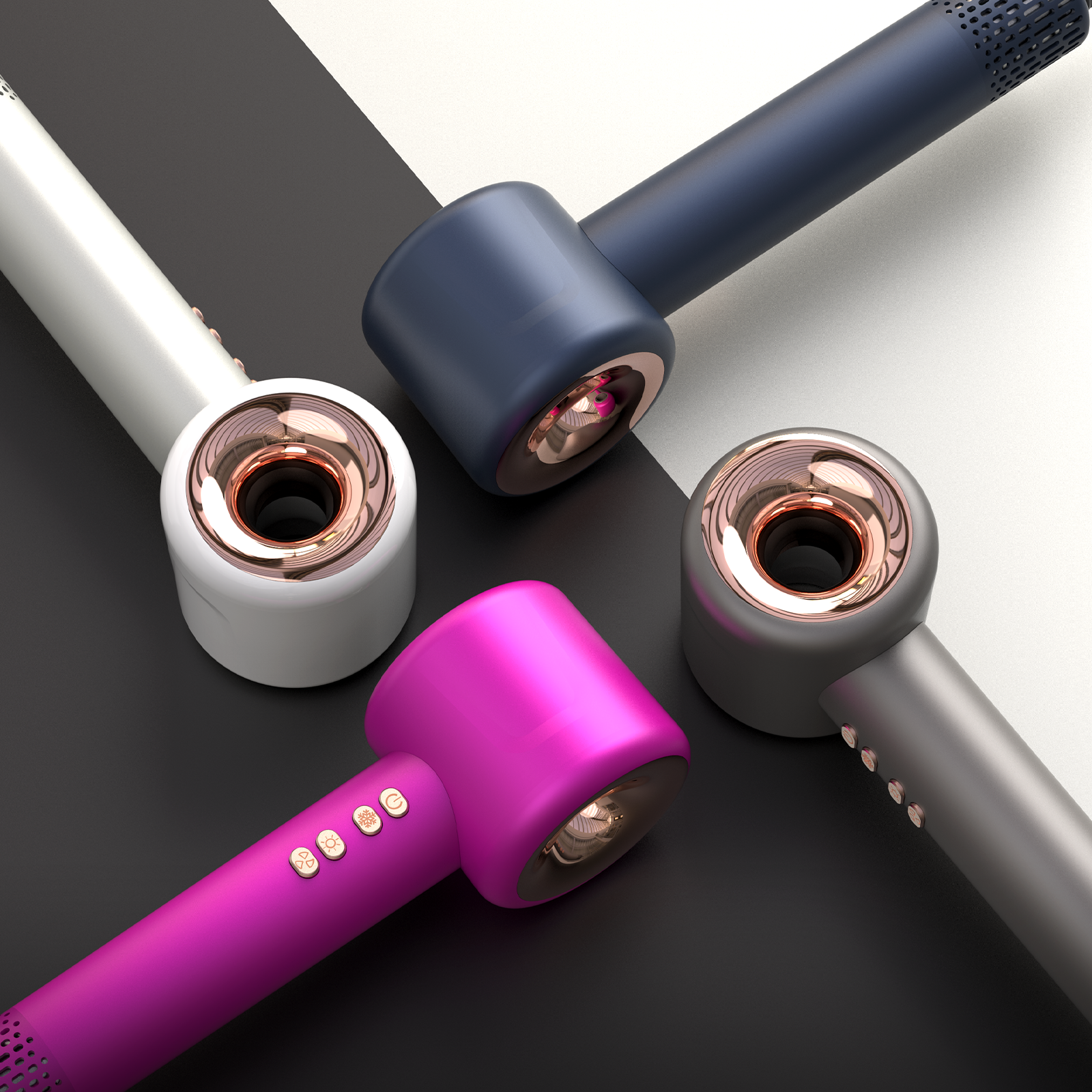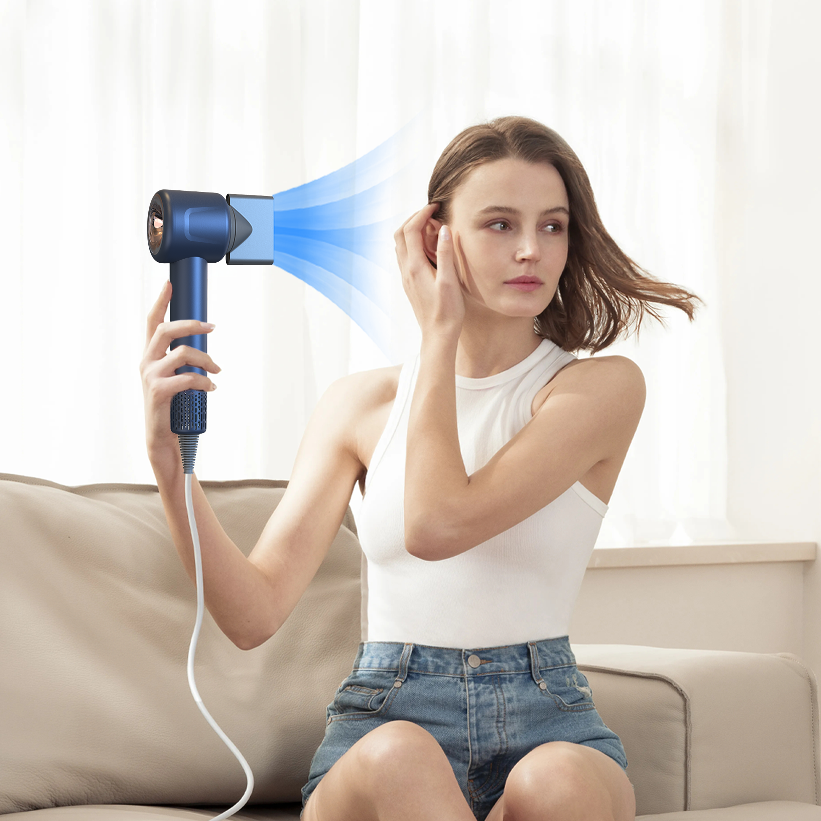 Zenvora exploite l'avantage de son moteur puissant pour éjecter un flux d'air 3X plus fort. Cette structure de flux d'air dissipe directement l'humidité au niveau des racines, permettant un séchage rapide et uniforme sans la nécessité d'une chaleur excessive. Ainsi, tout en profitant d'un séchage rapide et efficace, vous bénéficiez aussi des soins doux du contrôle intelligent de la température.